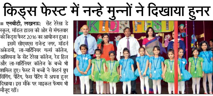 St. Teresa's Day School & College, Model House organised the Kids Fest on 4 November 2016 (Tuesday). CMS Rajendra Nagar, Modern Academy, La Martiniere Girls College, St. Teresa's College, Ashiana & Red Hill has participated in the program.
