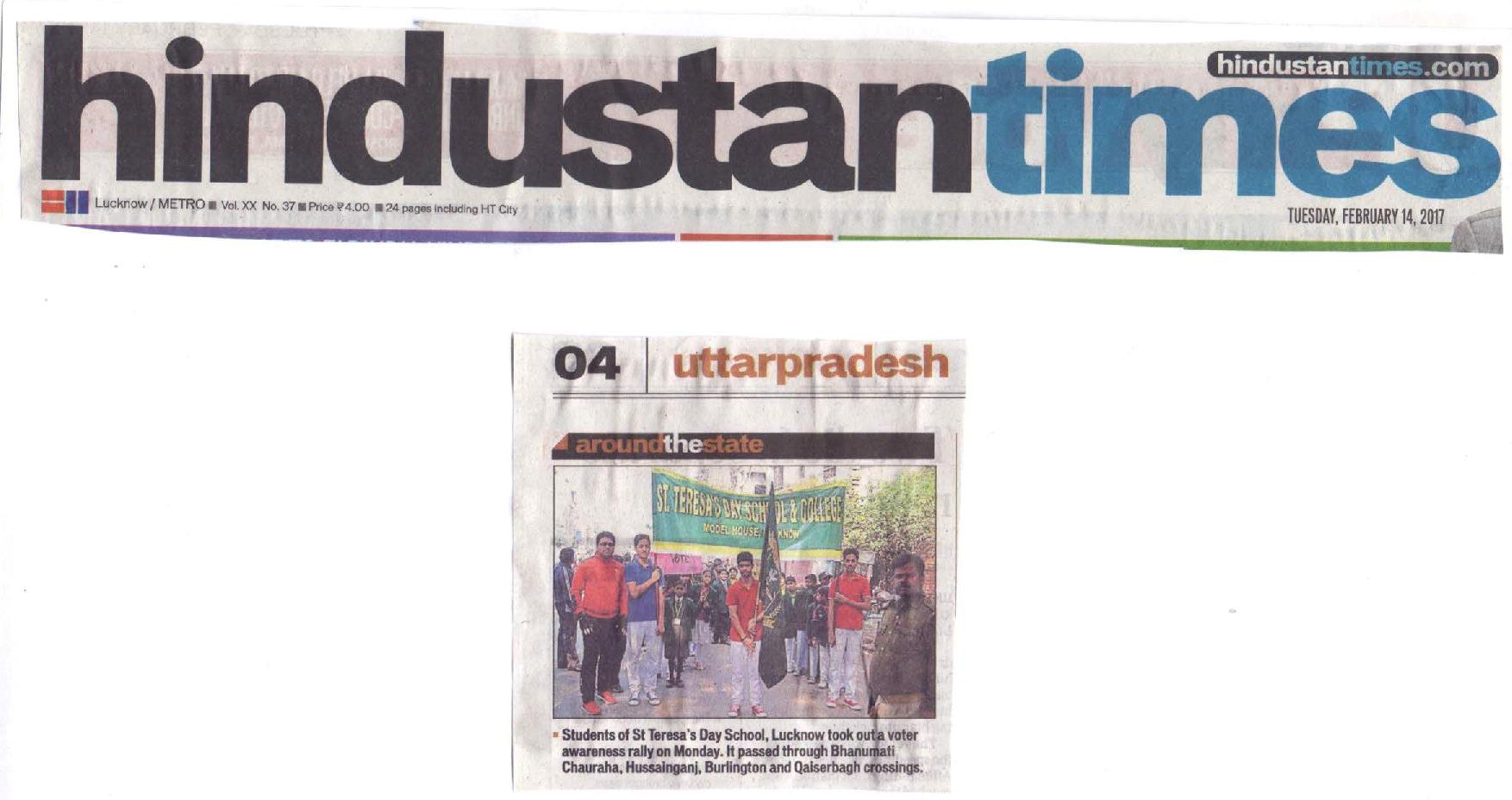 Students of St Teresa's Day School, Lucknow took out a voter awarness rally on Monday.