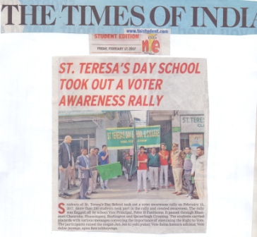 Students of St.Teresa's Day School took out a voter awarness rallyon february 13,2017.