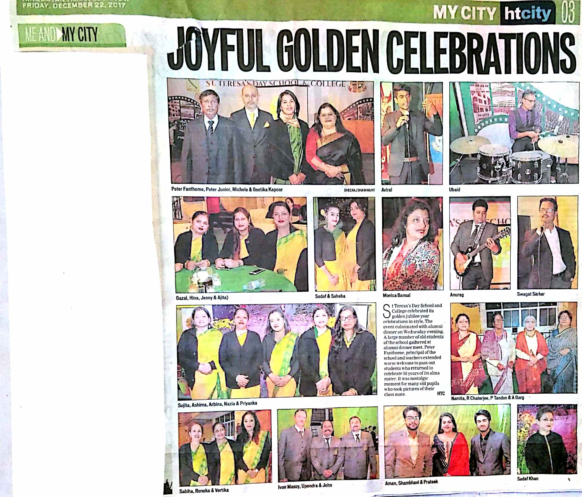 St. Teresa's Day School and College celebrated its golden jubilee year celebrations in style. The event culminated with alumni dinner on wednesday evening. A large number of old students of the school gathered at alumni dinner meet. Peter Fanthome, prinicipal of the school teachers extended warm welcome to pass out students who returned to celebrate 50 years of its almamater. It was nostalgic moment for many old pupils who took piuctures of their class mate.